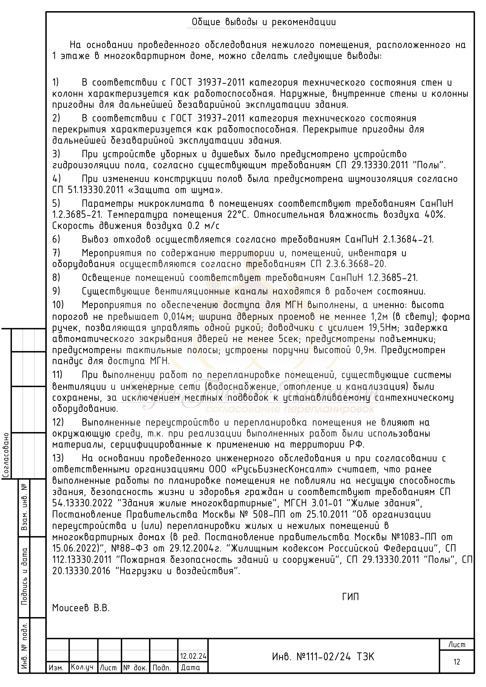 Техническое заключение может потребоваться при покупке или продаже недвижимости, чтобы оценить соответствие перепланировки требованиям и ее влияние на безопасность здания.