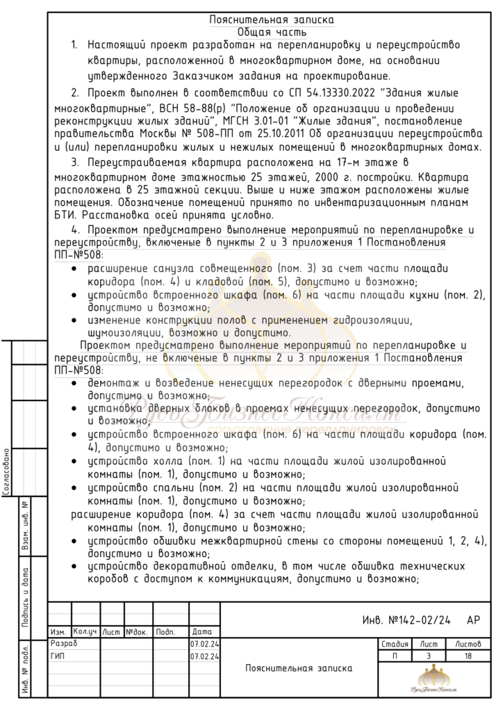 1.1. Проект переустройства и (или) перепланировки помещения в многоквартирном доме (далее — проект) в текстовом и графическом выражении должен содержать: